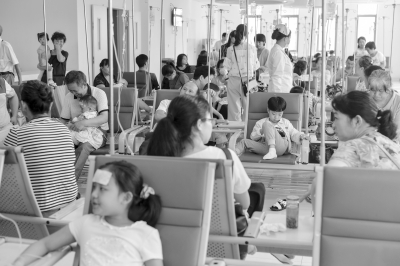 暑假以来儿童扎堆看病。13日,儿童医院人满为患记者胡冬冬 摄