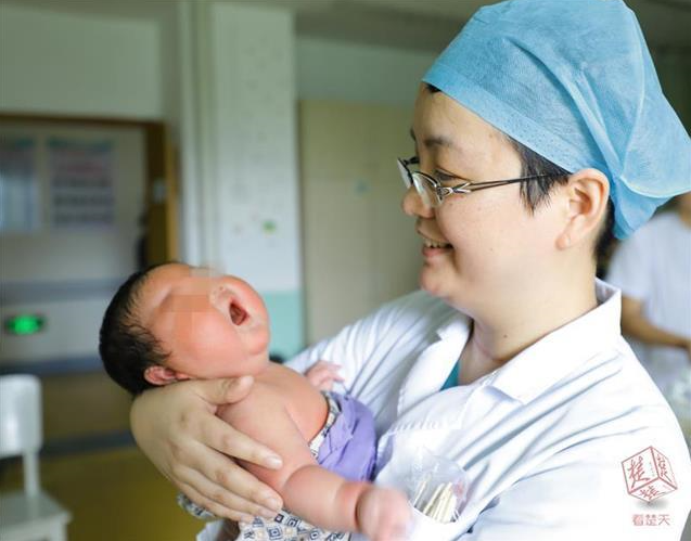 麻醉做完后,王红医生和余曼住院总医师为黄女士做剖宫产。因为黄女士肚皮上的肉垂下来盖住了小腹,需要一名医生协助,推起高山般厚厚的赘肉,暴露出腹部,王红才能进行消毒和剖宫产。此时孕妇需平躺,为了避免仰卧位综合征,需尽快取出胎儿。一般产妇脂肪层约4厘米,而黄女士厚了一倍,宝宝出来的“通道”加长,有窒息风险。好在王红技术娴熟,手术仅5分钟就取出宝宝。3点30分,一个10斤半的小男孩出生,小脸蛋像红苹果一样饱满,没有哭声。医生立刻进行心肺复苏,抢救成功,母子平安。